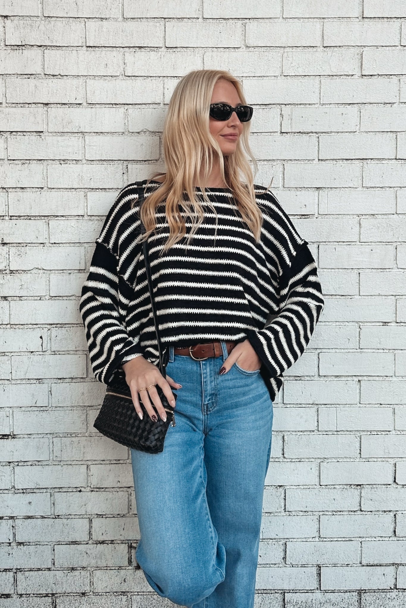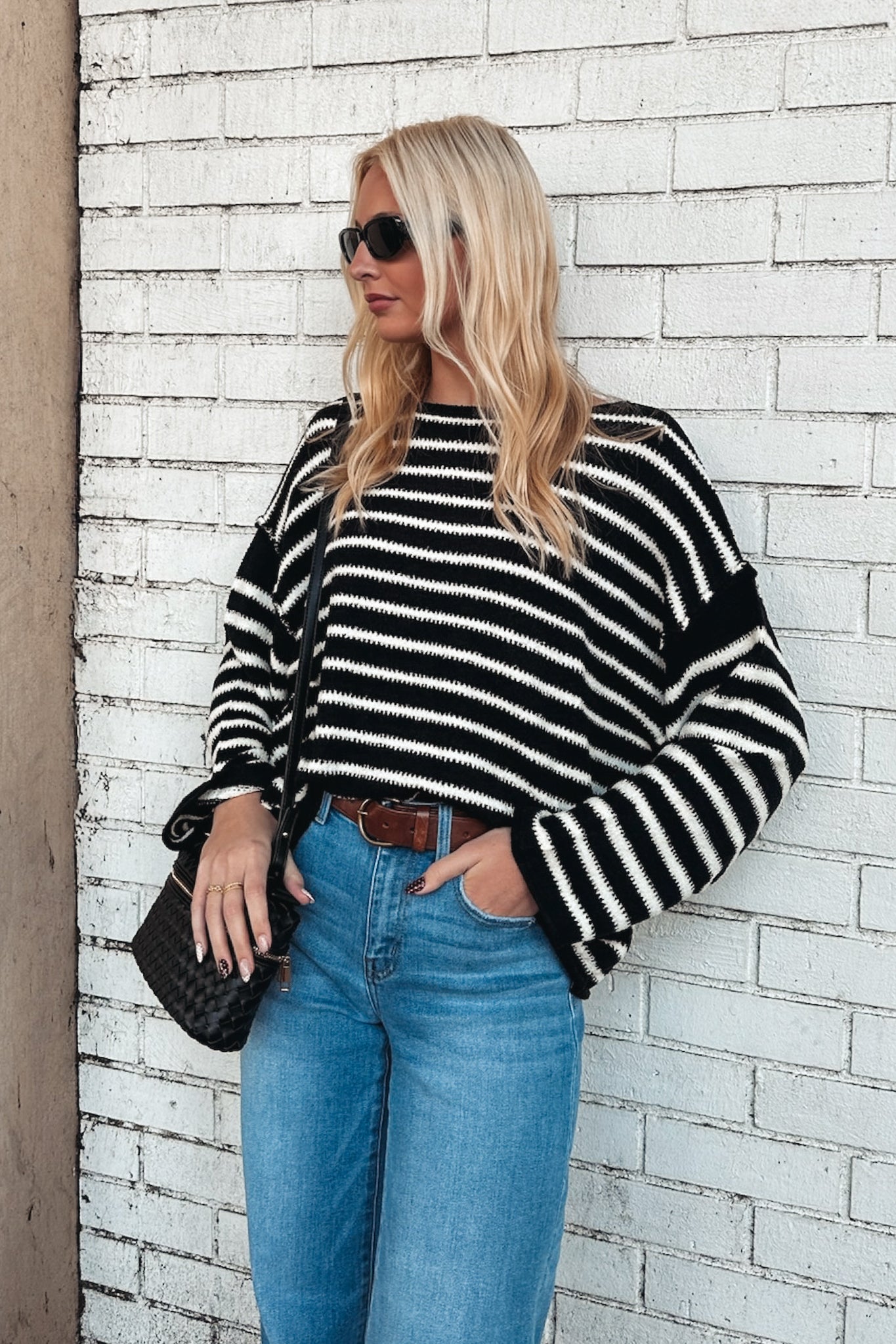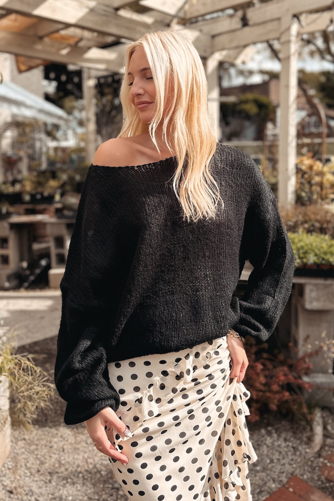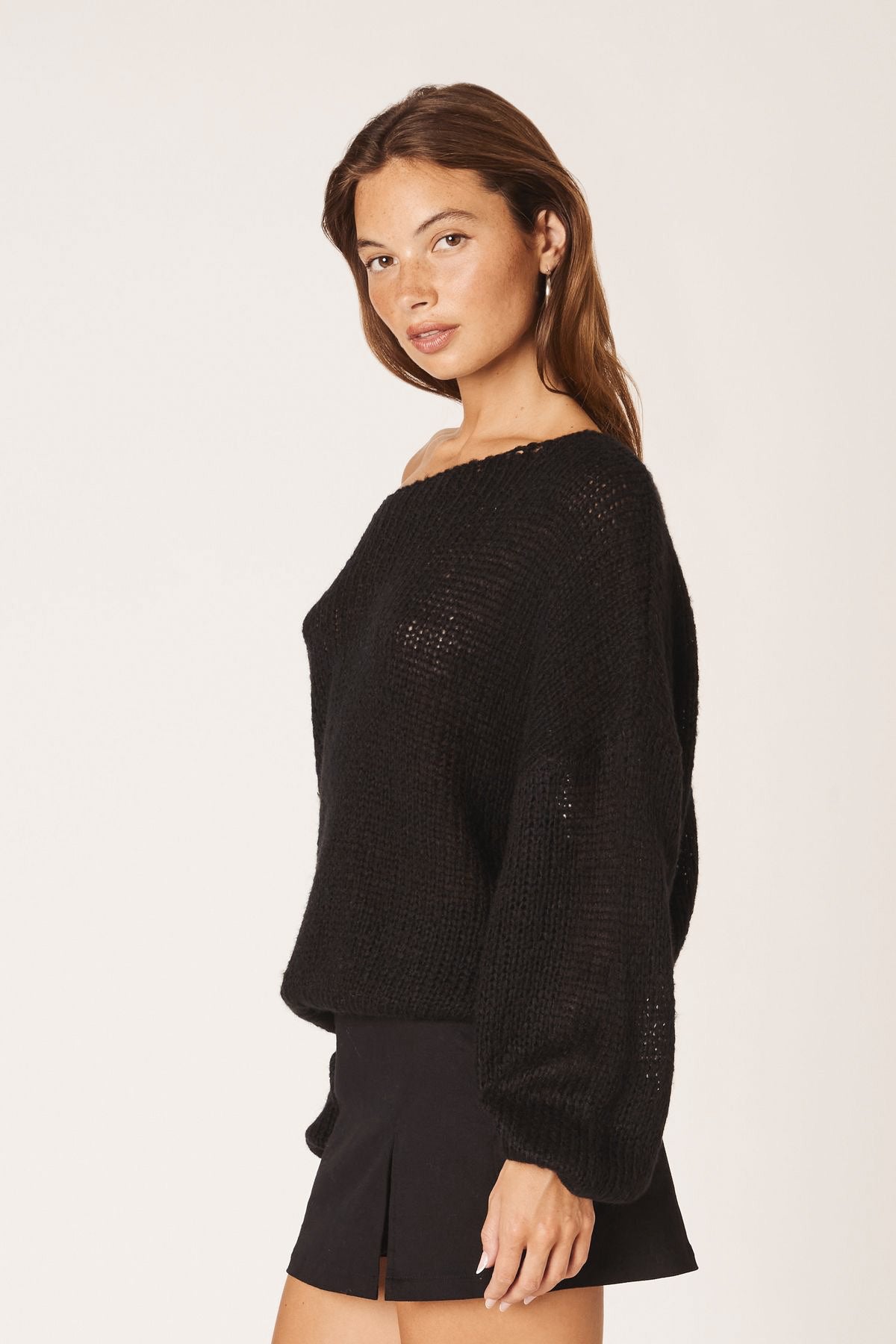 - Solid ribbed knit sweater