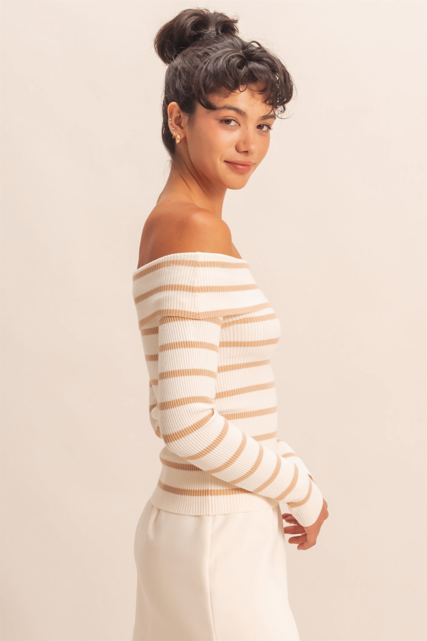 This best-selling, soft ribbed fabric and timeless neutral stripes make this off-the-shoulder top a closet staple. It’s effortlessly flattering, endlessly wearable, and made to be styled your way.